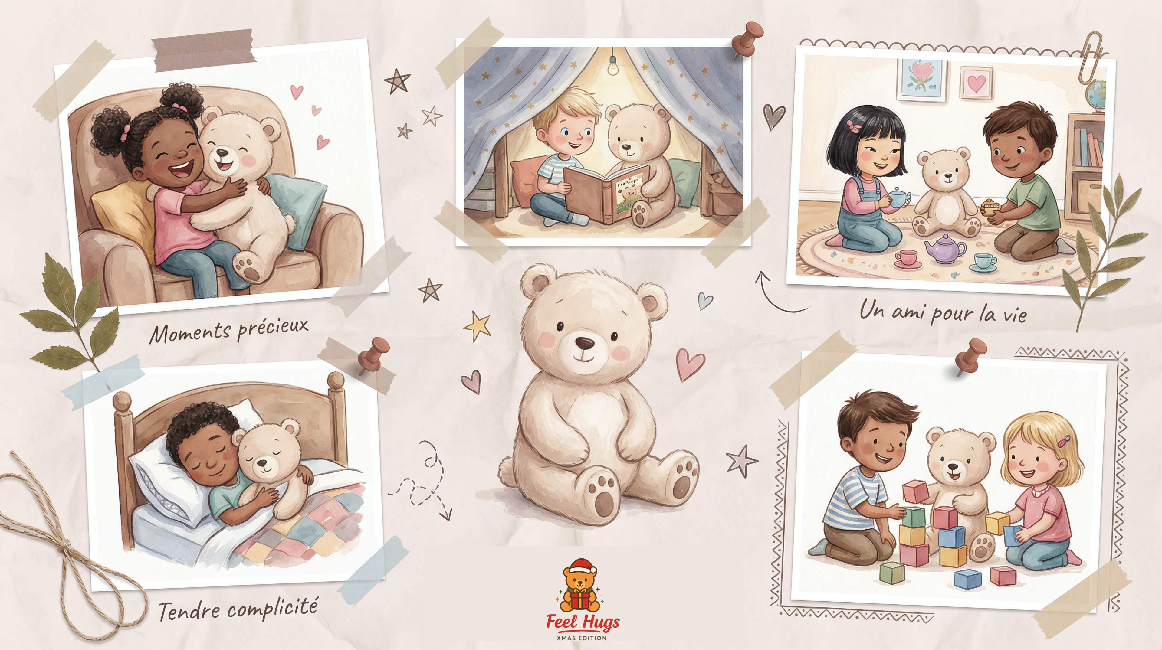 Notre univers s’inspire des émotions vraies, des gestes tendres et de la magie simple de l’enfance. Avec Feelhugs, chaque jour devient une petite page de bonheur, à garder près de soi… pour toujours. 💛